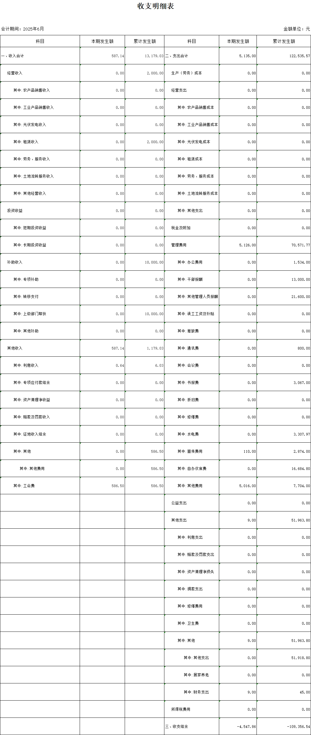 【村(社區(qū))財務收支狀況】高田鎮(zhèn)巖嶺村2025年6月份財務收支狀況明細賬
