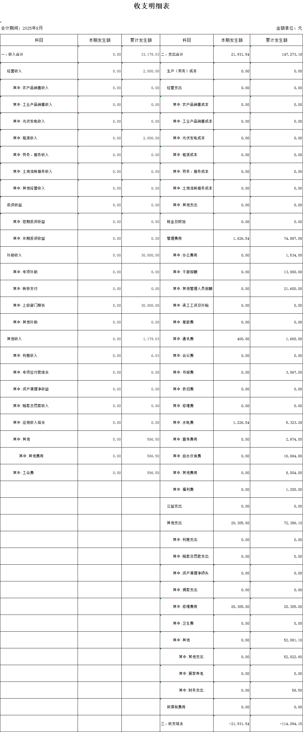 【村(社區(qū))財務(wù)收支狀況】高田鎮(zhèn)巖嶺村2025年8月份財務(wù)收支狀況明細(xì)賬