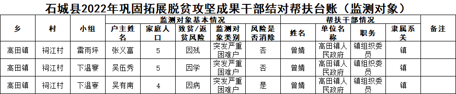 【防止返貧幫扶工作】祠江村2022年鞏固拓展脫貧攻堅成果干部結對幫扶臺賬(監(jiān)測對象)