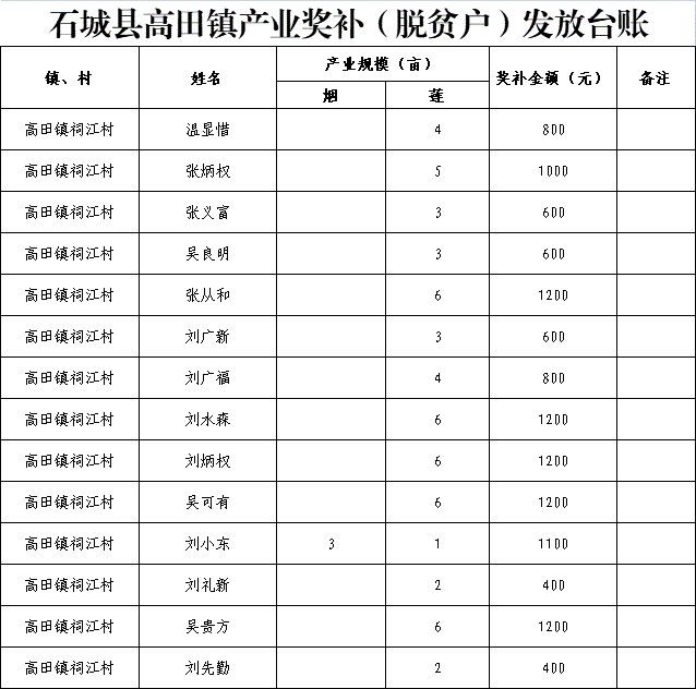 【產(chǎn)業(yè)扶持】高田鎮(zhèn)祠江村產(chǎn)業(yè)獎補(脫貧戶)發(fā)放臺賬(2022年度第一批)