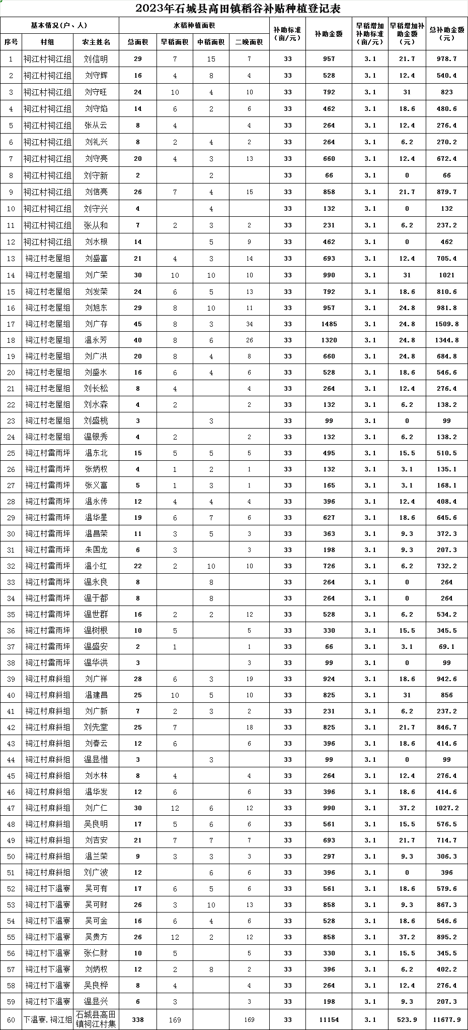 【涉農(nóng)補貼】2023年高田鎮(zhèn)祠江村稻谷補貼種植登記表