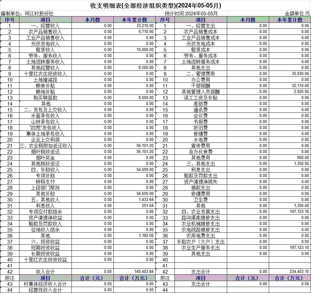 【村(社區(qū))財(cái)務(wù)收支狀況】高田鎮(zhèn)祠江村2024年5月份財(cái)務(wù)收支狀況明細(xì)賬