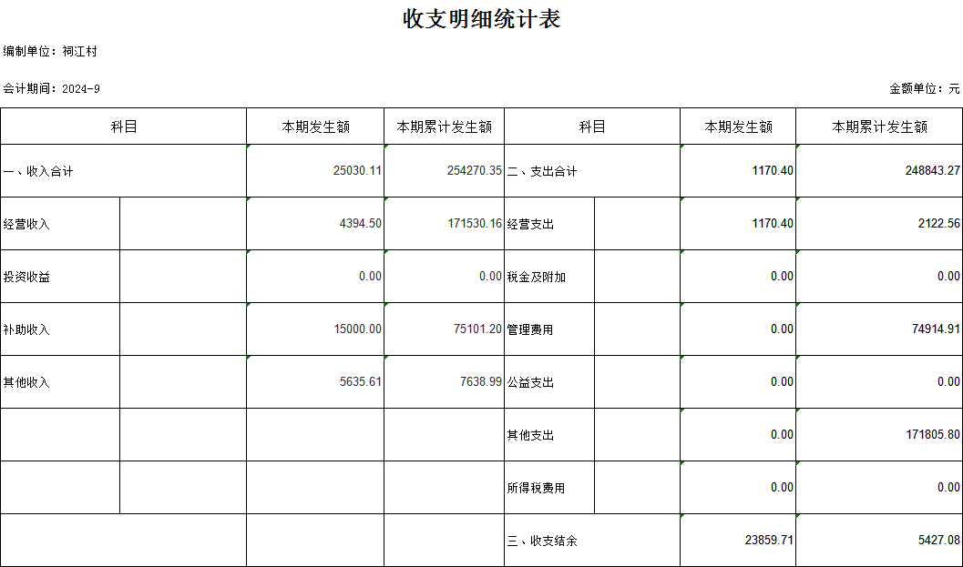 【村(社區(qū))財務(wù)收支狀況】高田鎮(zhèn)祠江村2024年9月份財務(wù)收支狀況明細(xì)賬