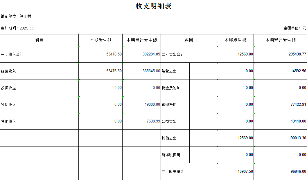 【村(社區(qū))財務(wù)收支狀況】高田鎮(zhèn)祠江村2024年11月份財務(wù)收支狀況明細(xì)賬