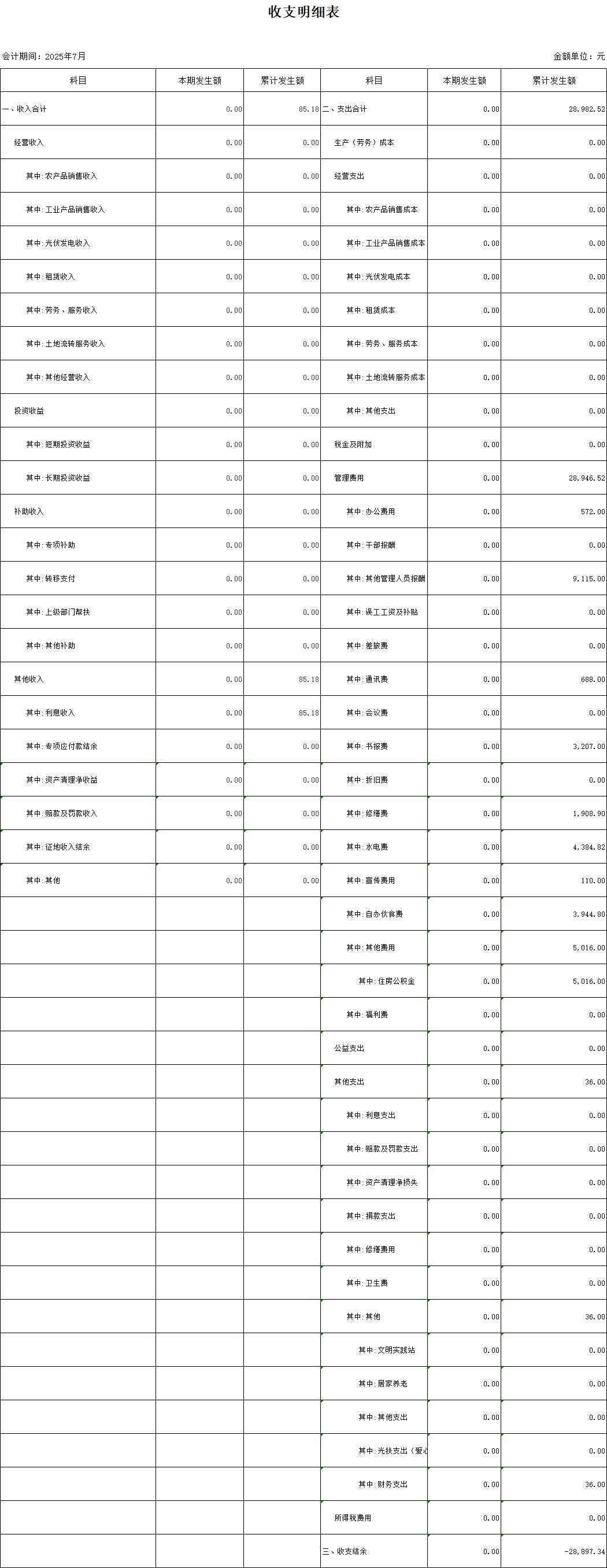 【村(社區(qū))財(cái)務(wù)收支狀況】高田鎮(zhèn)祠江村2025年7月份財(cái)務(wù)收支狀況明細(xì)賬