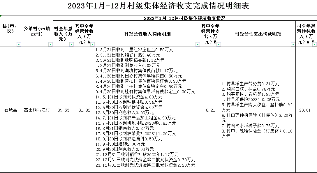 2023年祠江村集體經(jīng)濟(jì)收支明細(xì)(按年度更新)