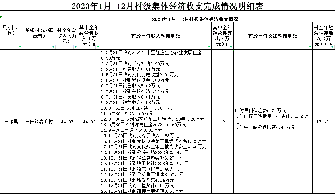 2023年巖嶺村集體經濟收支明細(按年度更新)
