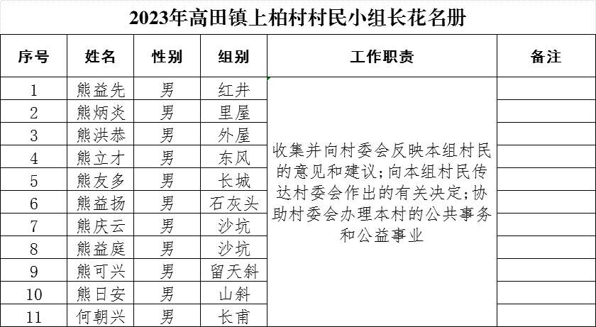 【其他人員信息】2023年高田鎮(zhèn)上柏村村民小組長(zhǎng)花名冊(cè)