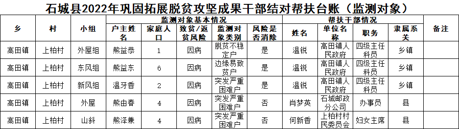 【防止返貧幫扶工作】上柏村2022年鞏固拓展脫貧攻堅(jiān)成果干部結(jié)對(duì)幫扶臺(tái)賬(監(jiān)測(cè)對(duì)象)