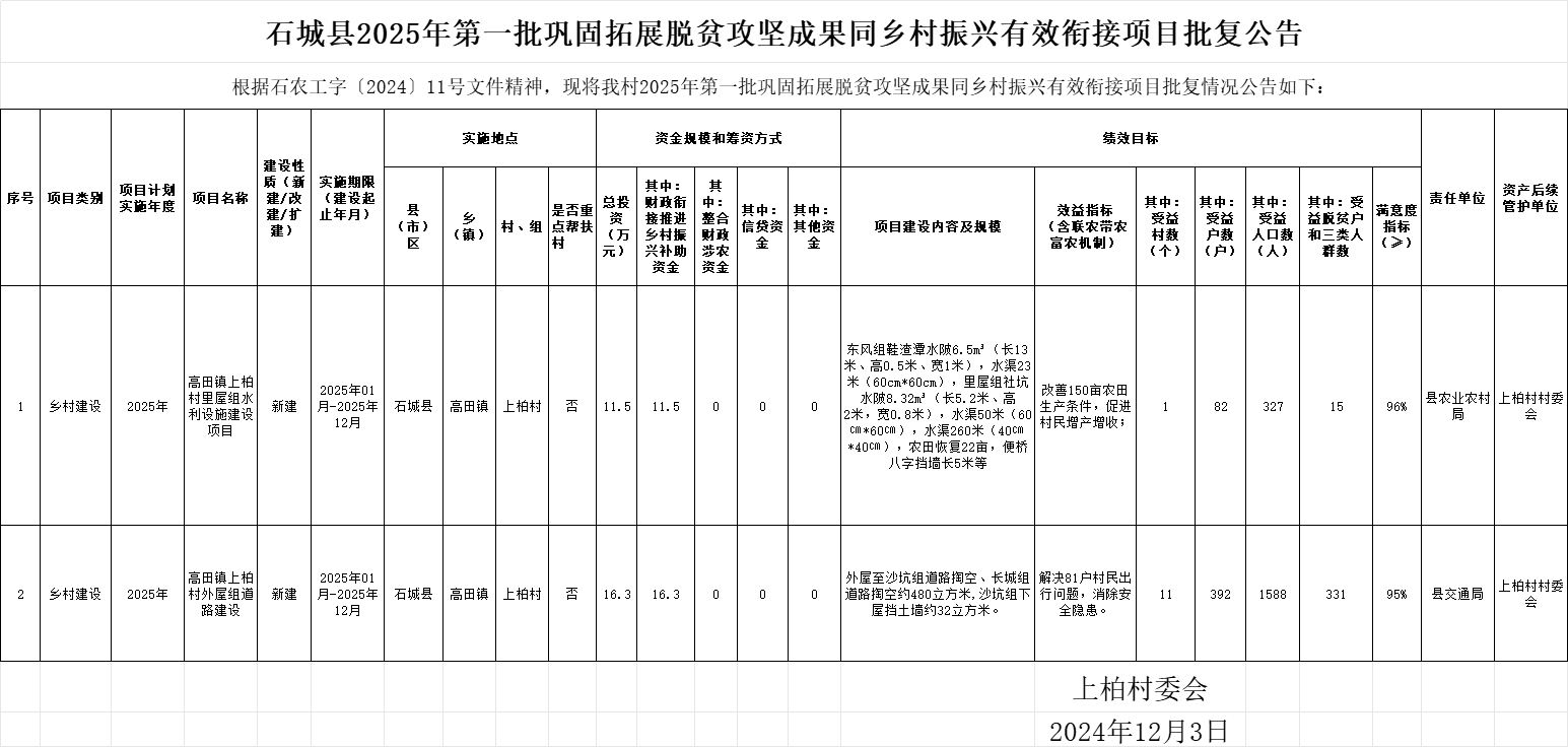 石城縣2025年第一批鞏固拓展脫貧攻堅(jiān)成果同鄉(xiāng)村振興有效銜接項(xiàng)目批復(fù)公告