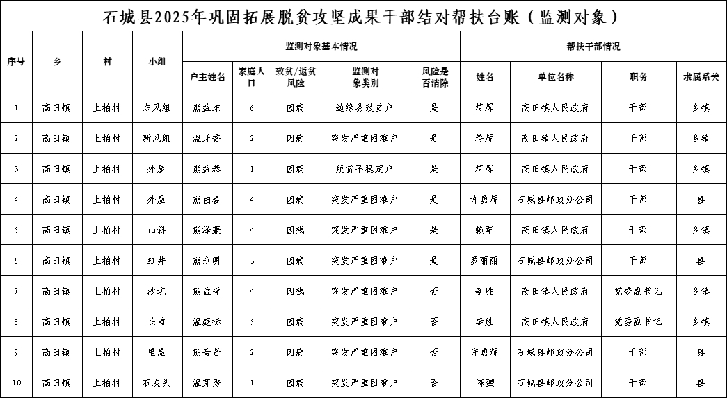 【防止返貧幫扶工作】上柏村2025年鞏固拓展脫貧攻堅成果干部結(jié)對幫扶臺賬(監(jiān)測對象)