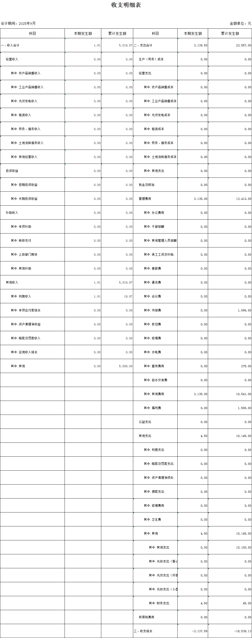 【村(社區(qū))財(cái)務(wù)收支狀況】高田鎮(zhèn)上柏村2025年9月份財(cái)務(wù)收支狀況明細(xì)賬