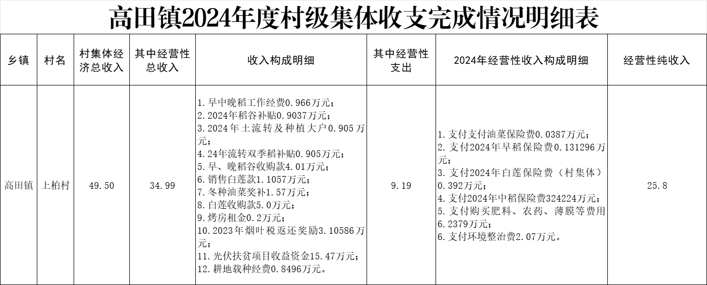 2024年上柏村集體經(jīng)濟(jì)收支明細(xì)(按年度更新)