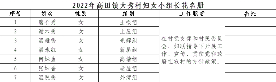【其他人員信息】2022年高田鎮(zhèn)大秀村婦女小組長花名冊