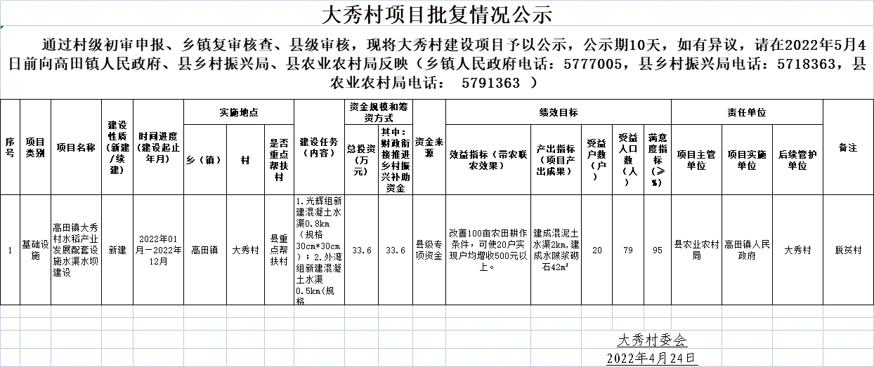 【公示公告】大秀村項(xiàng)目批復(fù)情況公示