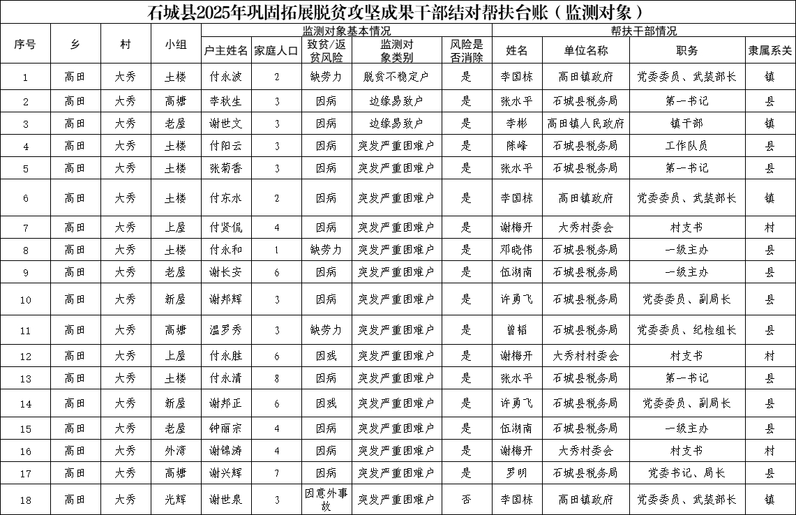 【防止返貧幫扶工作】大秀村2025年鞏固拓展脫貧攻堅(jiān)成果干部結(jié)對幫扶臺賬(監(jiān)測對象)