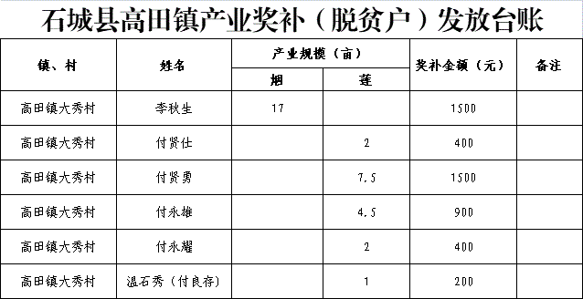 【產(chǎn)業(yè)扶持】高田鎮(zhèn)大秀村產(chǎn)業(yè)獎補(脫貧戶)發(fā)放臺賬(2022年度第一批)
