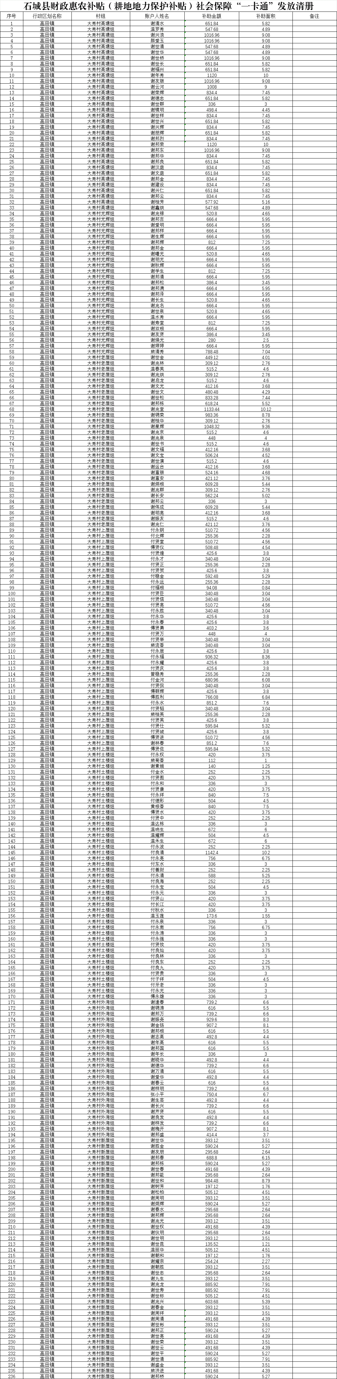 【涉農(nóng)補貼】2024年高田鎮(zhèn)大秀村財政惠農(nóng)補貼(耕地地力保護補貼)社會保障“一卡通”發(fā)放清冊