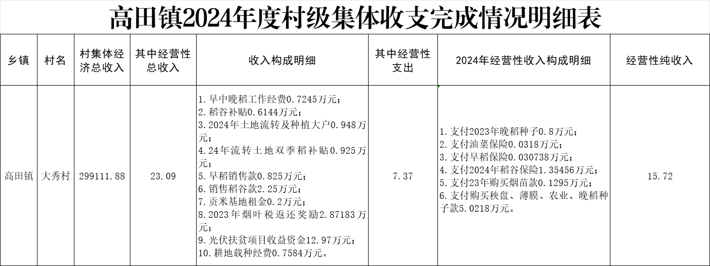 2024年大秀村集體經(jīng)濟(jì)收支明細(xì)(按年度更新)
