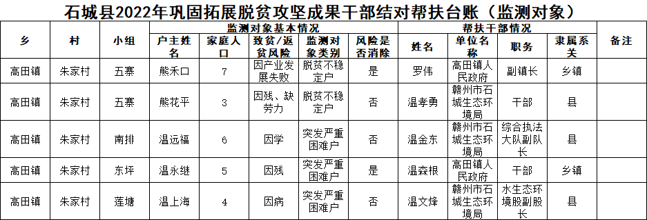 【防止返貧幫扶工作】朱家村2022年鞏固拓展脫貧攻堅成果干部結(jié)對幫扶臺賬(監(jiān)測對象)