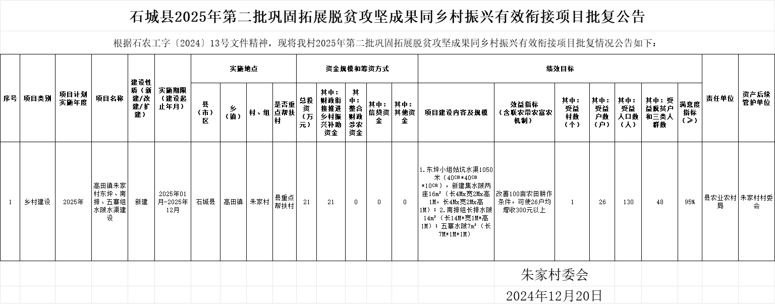 石城縣2025年第二批鞏固拓展脫貧攻堅成果同鄉(xiāng)村振興有效銜接項目批復(fù)公告