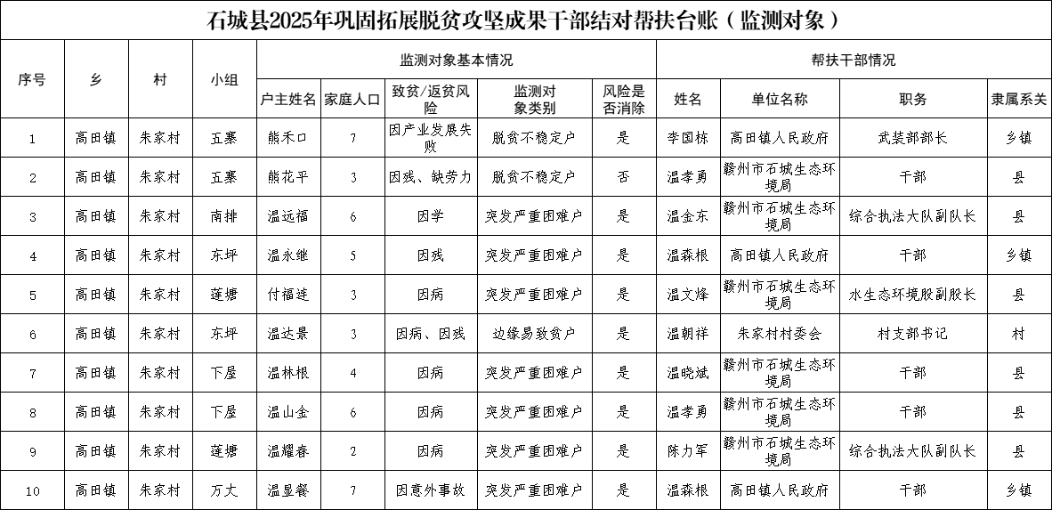 【防止返貧幫扶工作】朱家村2025年鞏固拓展脫貧攻堅(jiān)成果干部結(jié)對(duì)幫扶臺(tái)賬(監(jiān)測(cè)對(duì)象)