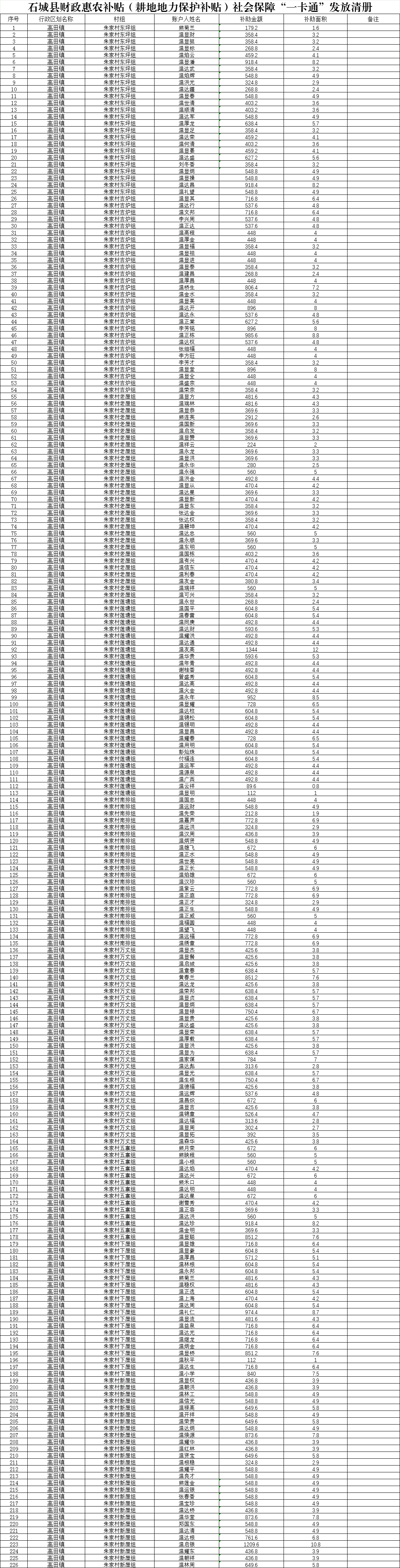 【涉農(nóng)補(bǔ)貼】2024年高田鎮(zhèn)朱家村財(cái)政惠農(nóng)補(bǔ)貼(耕地地力保護(hù)補(bǔ)貼)社會(huì)保障“一卡通”發(fā)放清冊(cè)
