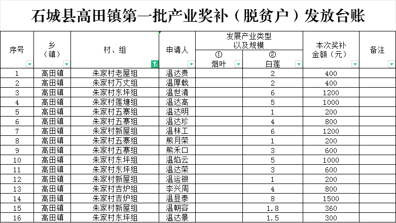 【涉農(nóng)補(bǔ)貼】2024年高田鎮(zhèn)第一批產(chǎn)業(yè)獎(jiǎng)補(bǔ)(脫貧戶)發(fā)放臺(tái)賬