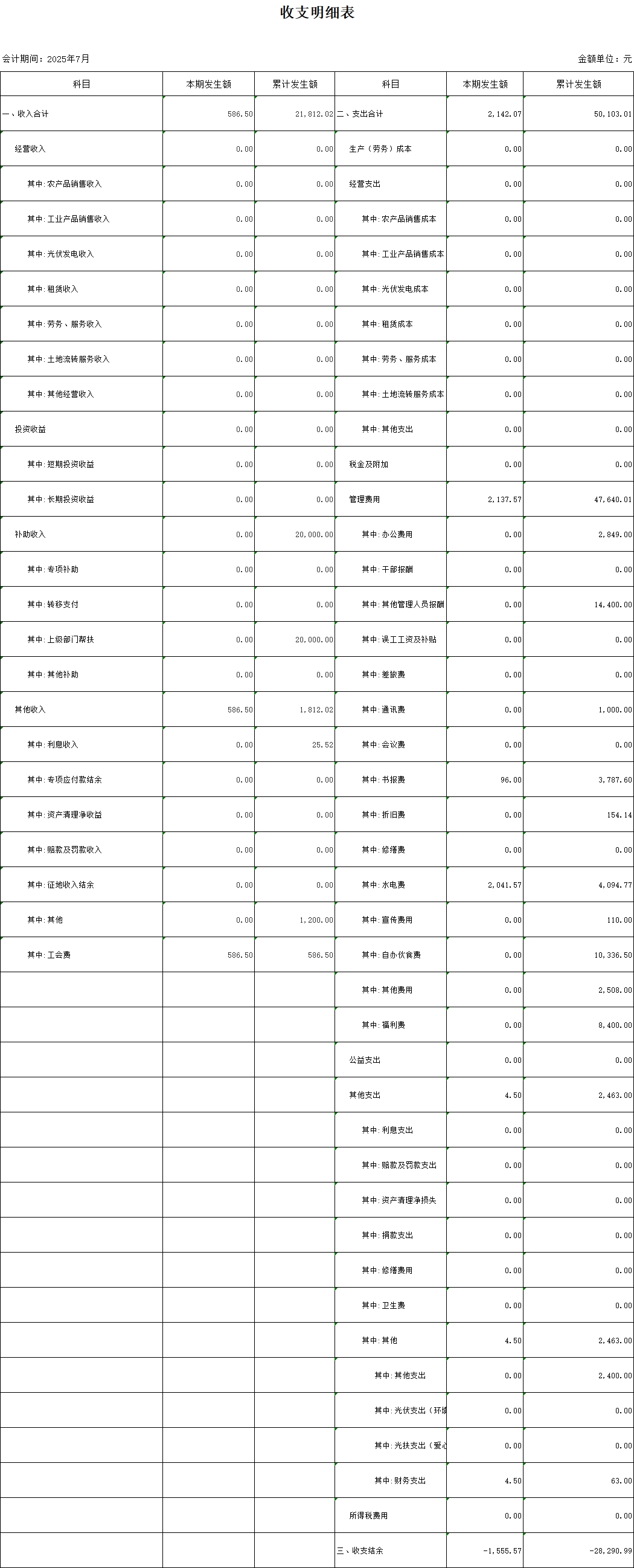【村(社區(qū))財務收支狀況】高田鎮(zhèn)朱家村2025年7月份財務收支狀況明細賬