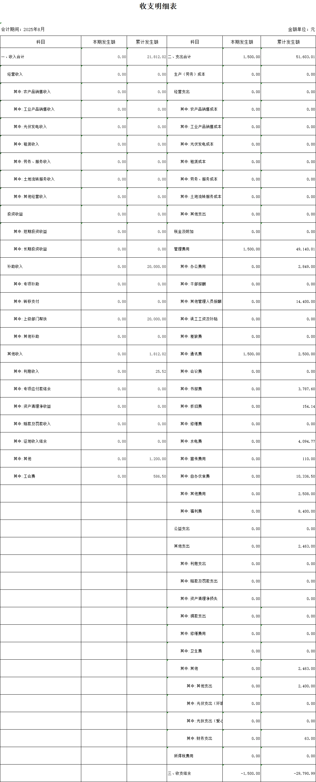 【村(社區(qū))財(cái)務(wù)收支狀況】高田鎮(zhèn)朱家村2025年8月份財(cái)務(wù)收支狀況明細(xì)賬