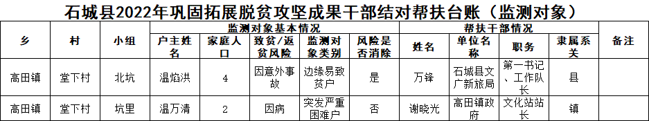 【防止返貧幫扶工作】堂下村2022年鞏固拓展脫貧攻堅成果干部結(jié)對幫扶臺賬(監(jiān)測對象)