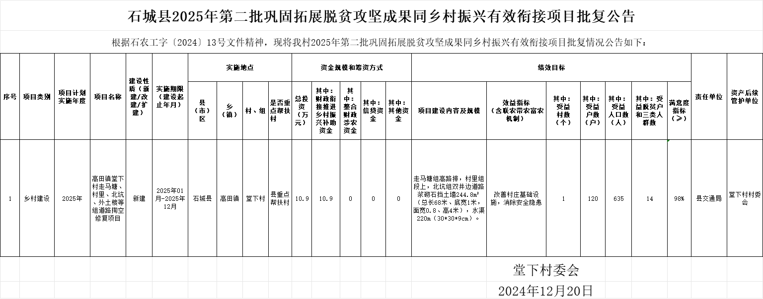 石城縣2025年第二批鞏固拓展脫貧攻堅成果同鄉(xiāng)村振興有效銜接項目批復公告