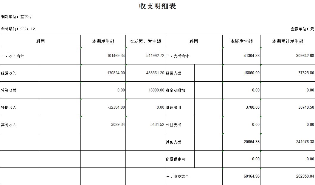 【村(社區(qū))財務(wù)收支狀況】高田鎮(zhèn)堂下村2024年12月份財務(wù)收支狀況明細(xì)賬