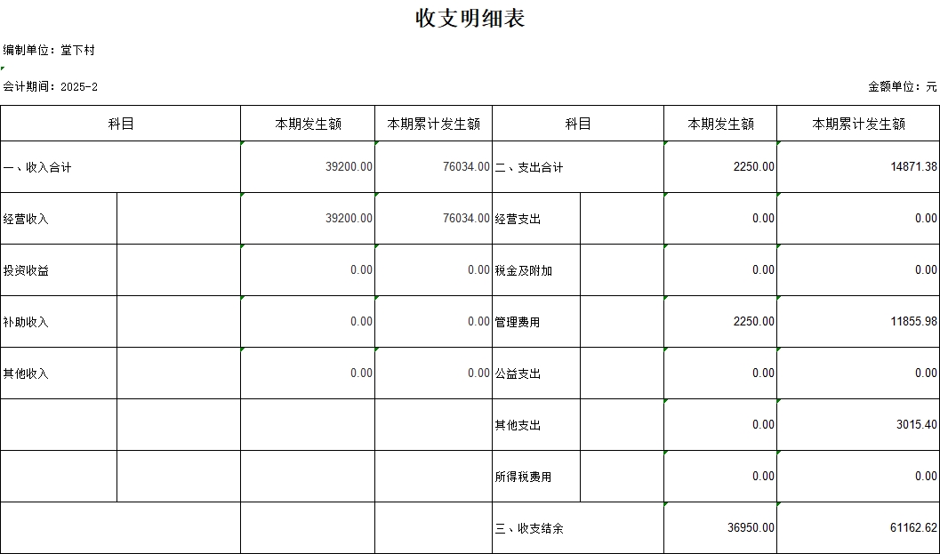 【村(社區(qū))財(cái)務(wù)收支狀況】高田鎮(zhèn)堂下村2025年2月份財(cái)務(wù)收支狀況明細(xì)賬