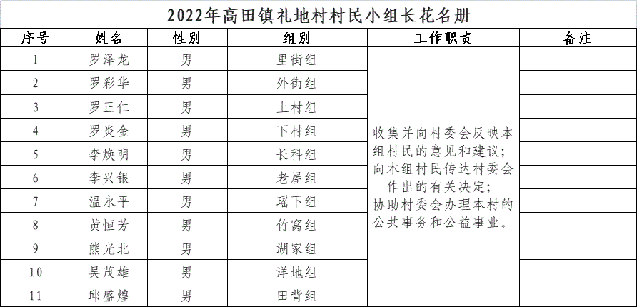 【其他人員信息】2022年高田鎮(zhèn)禮地村村民小組長(zhǎng)花名冊(cè)