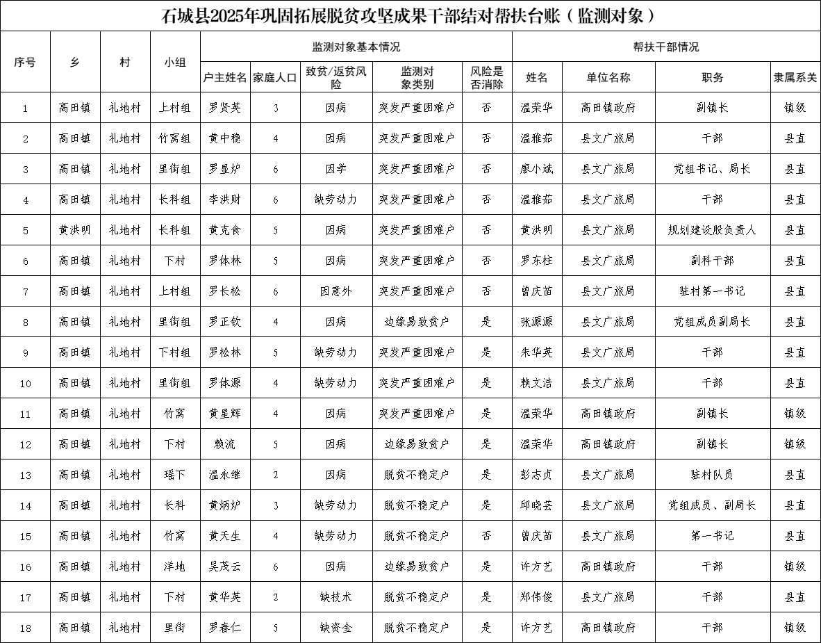 【防止返貧幫扶工作】禮地村2025年鞏固拓展脫貧攻堅成果干部結對幫扶臺賬(監(jiān)測對象)