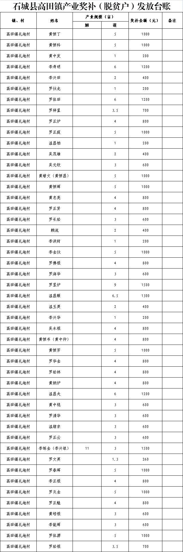 【產(chǎn)業(yè)扶持】高田鎮(zhèn)禮地村產(chǎn)業(yè)獎補(脫貧戶)發(fā)放臺賬(2022年度第一批)