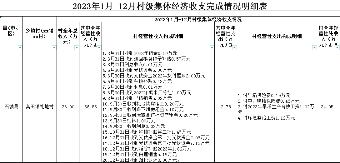 2023年禮地村集體經(jīng)濟收支明細(按年度更新)