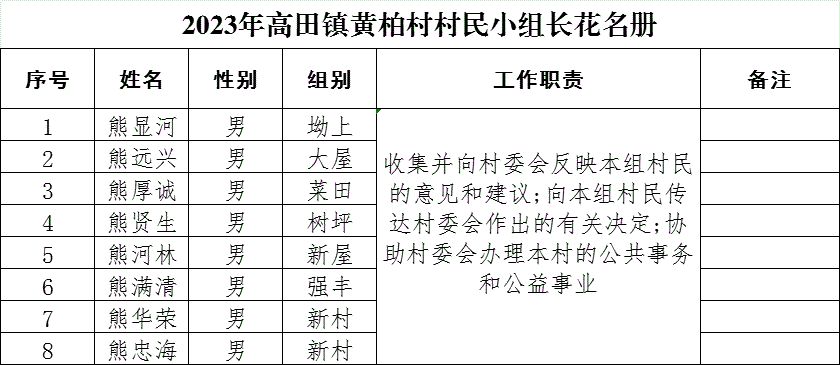 【其他人員信息】2023年高田鎮(zhèn)黃柏村村民小組長花名冊