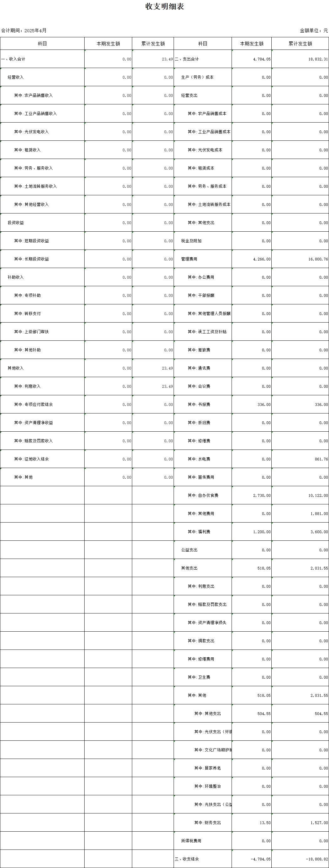 【村(社區(qū))財務(wù)收支狀況】高田鎮(zhèn)黃柏村2025年4月份財務(wù)收支狀況明細賬