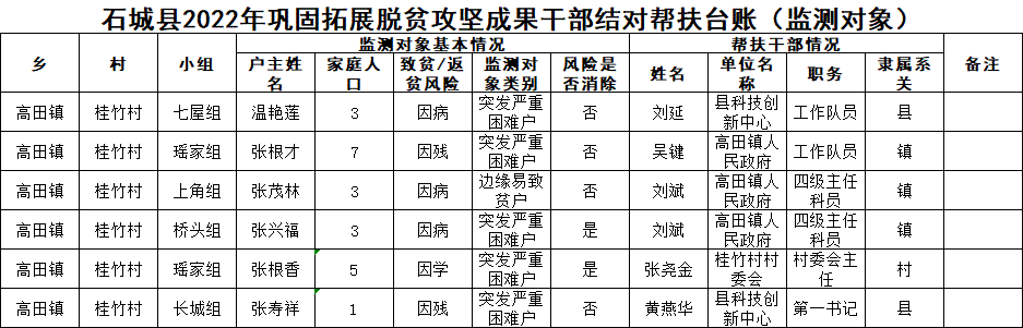 【防止返貧幫扶工作】桂竹村2022年鞏固拓展脫貧攻堅(jiān)成果干部結(jié)對(duì)幫扶臺(tái)賬(監(jiān)測(cè)對(duì)象)