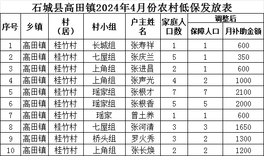 【最低生活保障】石城縣高田鎮(zhèn)桂竹村2024年4月份農(nóng)村低保發(fā)放公示
