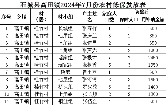 【最低生活保障】石城縣高田鎮(zhèn)桂竹村2024年7月份農(nóng)村低保發(fā)放公示
