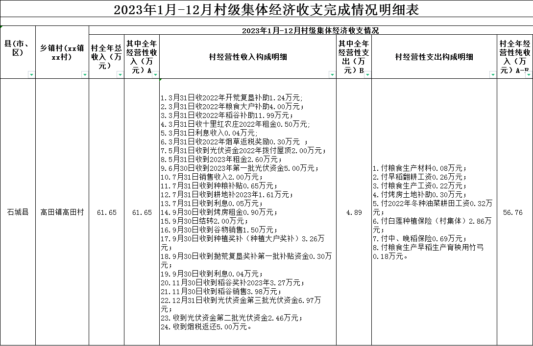 2023年高田村集體經(jīng)濟(jì)收支明細(xì)(按年度更新)
