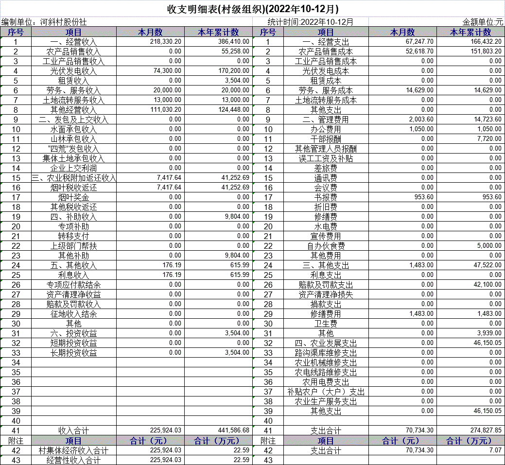 大由鄉(xiāng)河斜村2022年10-12月收支明細