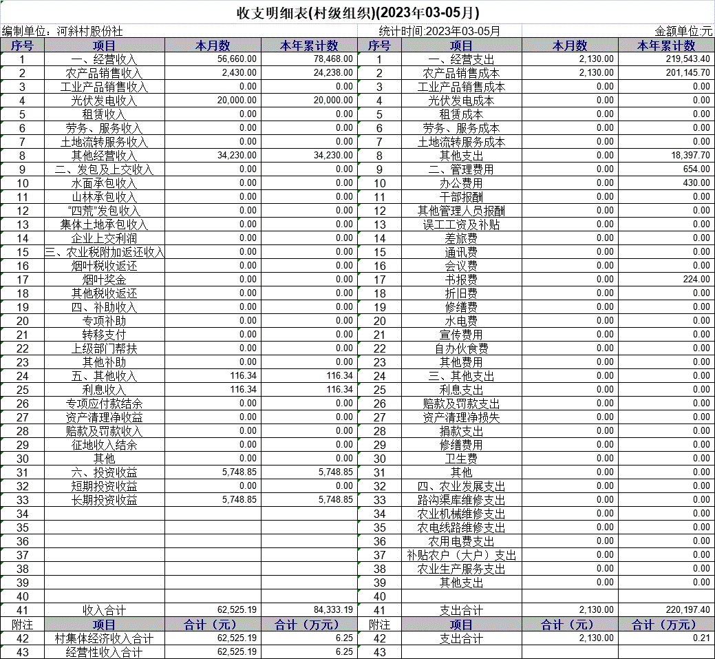 大由鄉(xiāng)河斜村2023年3-5月收支明細(xì)