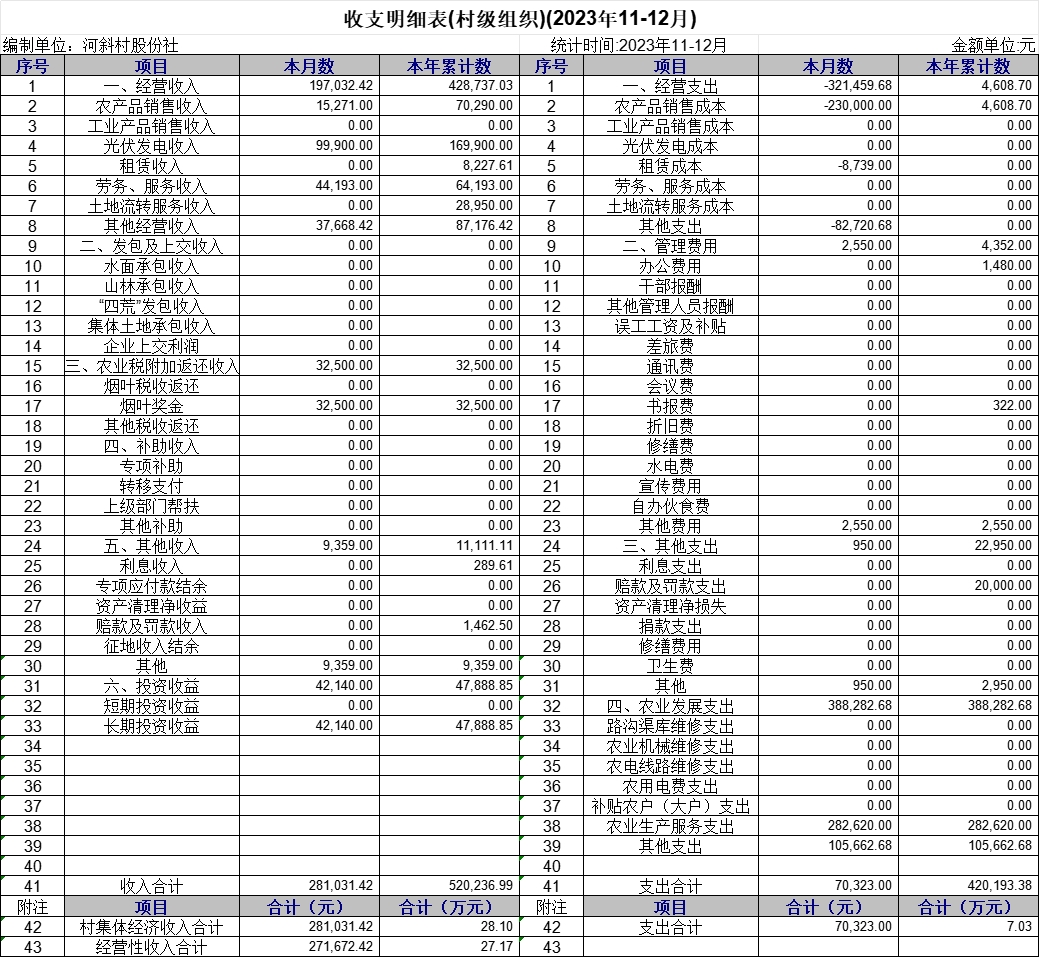 大由鄉(xiāng)河斜村2023年11-12月收支明細(xì)