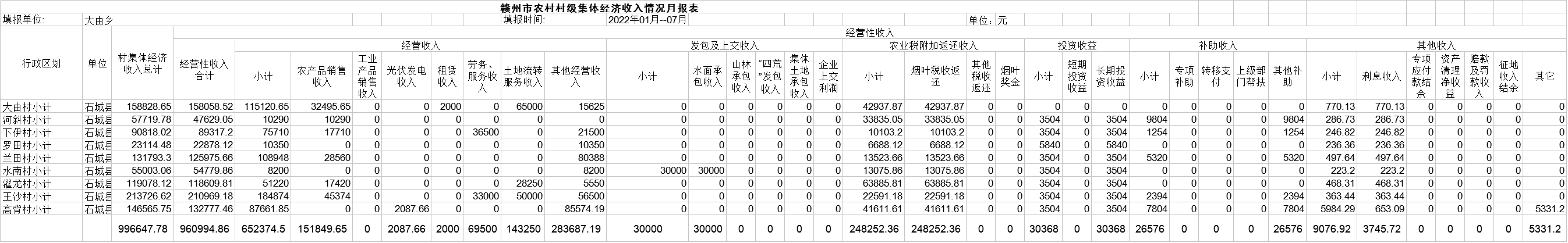 大由鄉(xiāng)各村集體經(jīng)濟(jì)情況