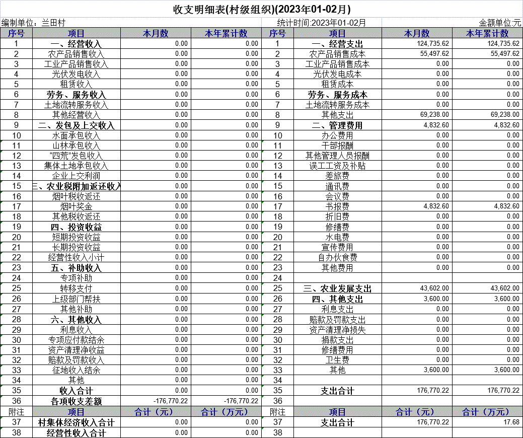 大由鄉(xiāng)蘭田村2023年1-2月收支明細