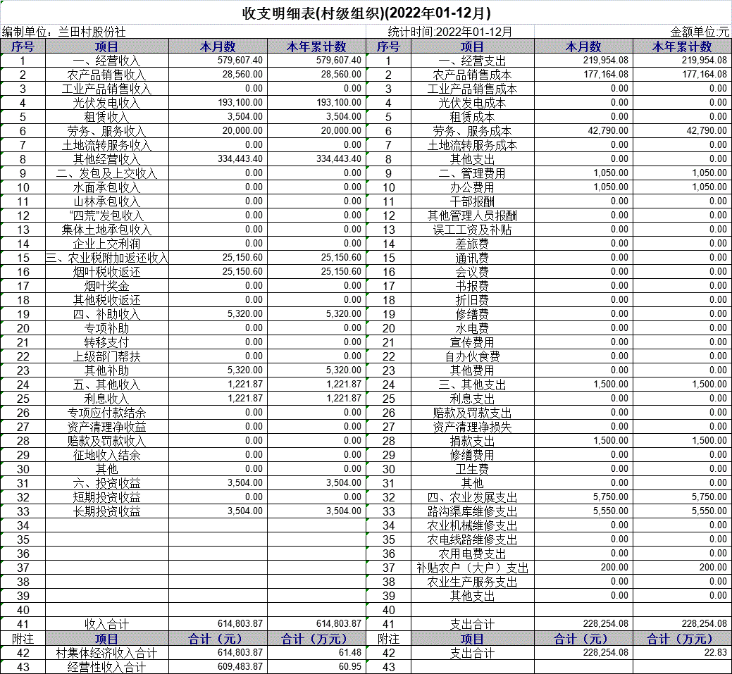 大由鄉(xiāng)蘭田村2022年01-12月收支明細(xì)表